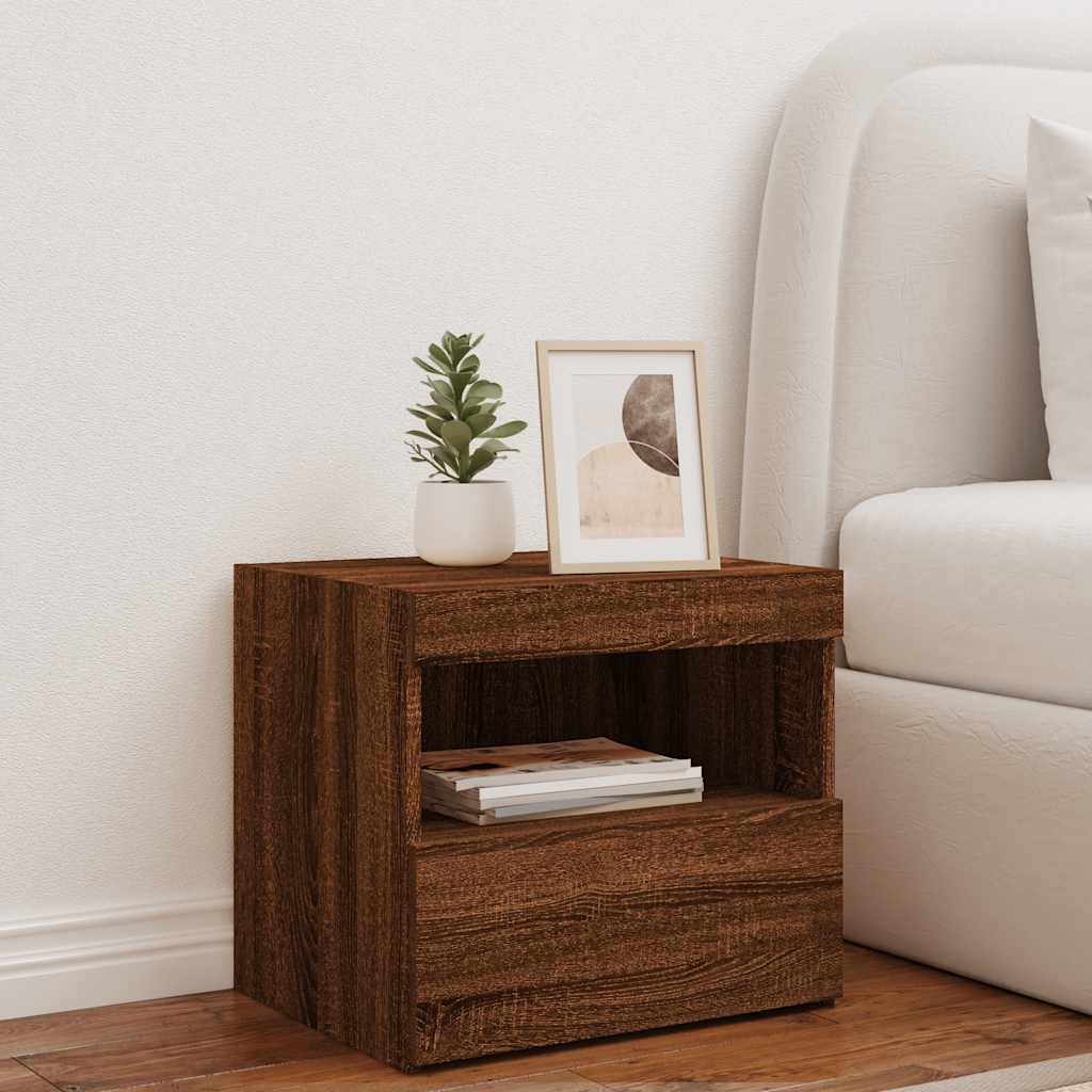 Comodino con Luci LED Rovere Marrone 50x40x45 cm 836775