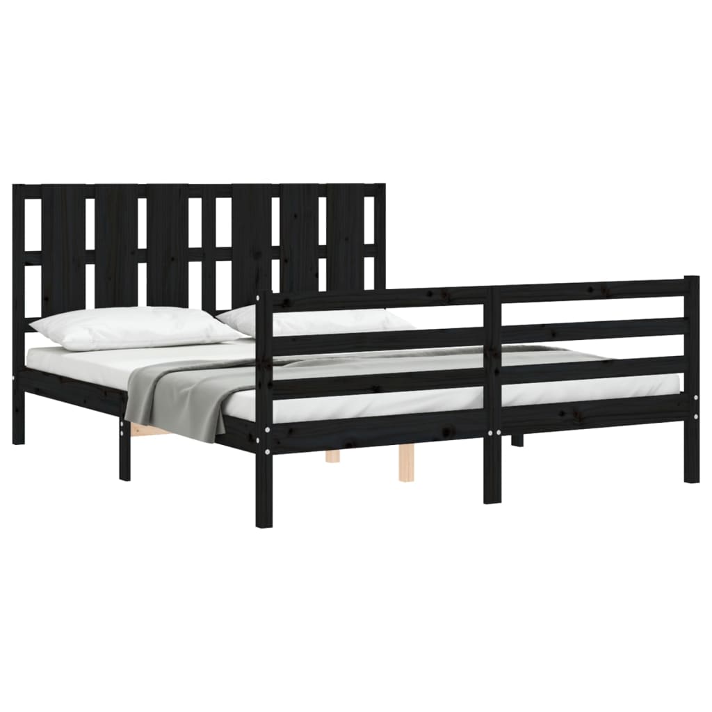 Giroletto con Testiera Nero 160x200 cm Legno Massello 3194130