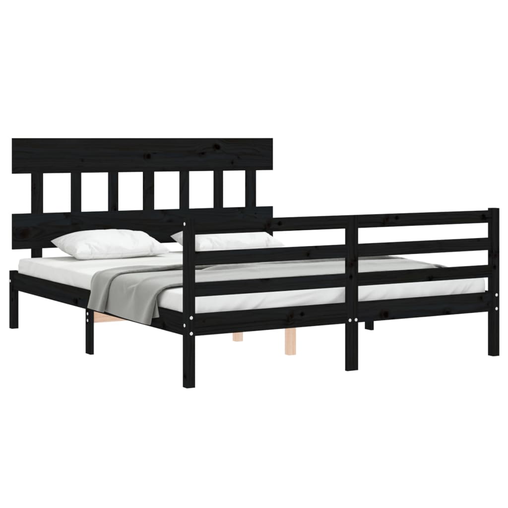 Giroletto con Testiera Nero 160x200 cm Legno Massello 3195170