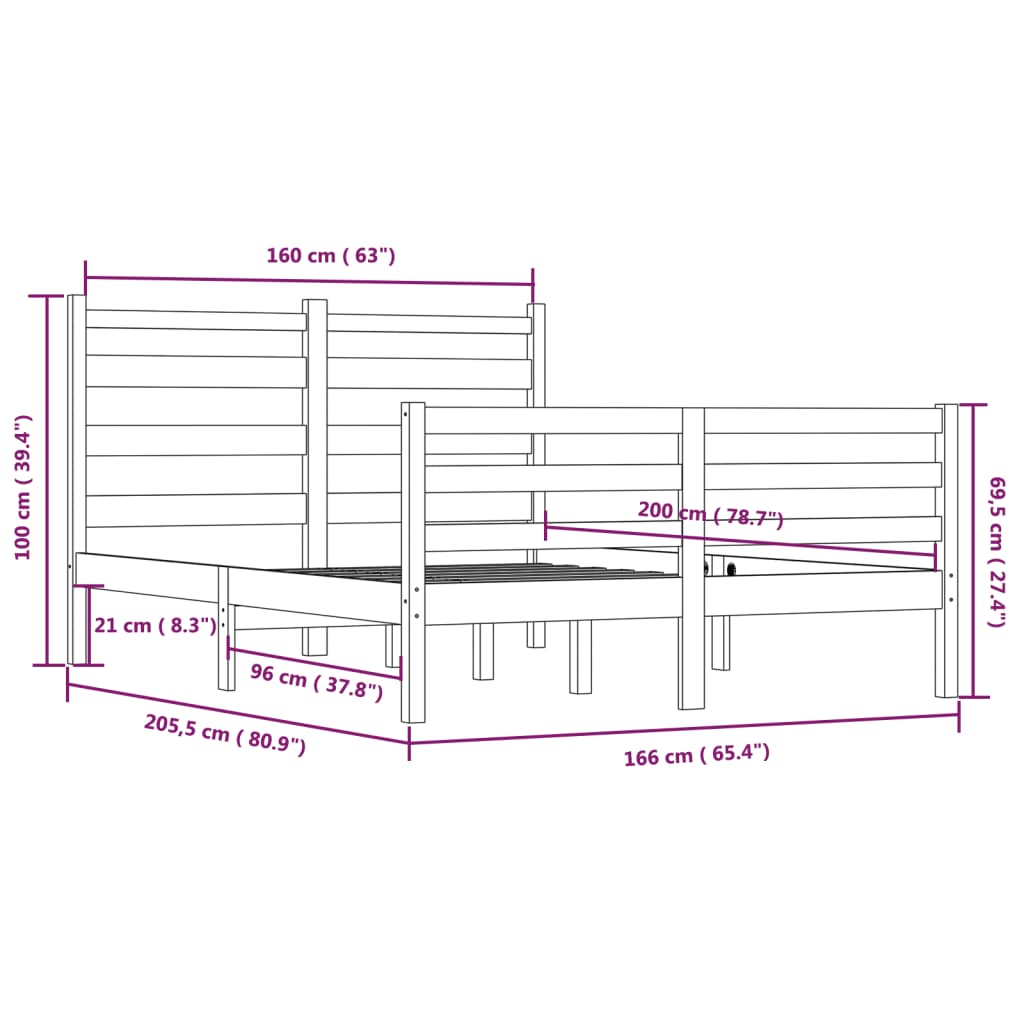Giroletto in Legno Massello di Pino 160x200 cm Marrone Ambra 3103726
