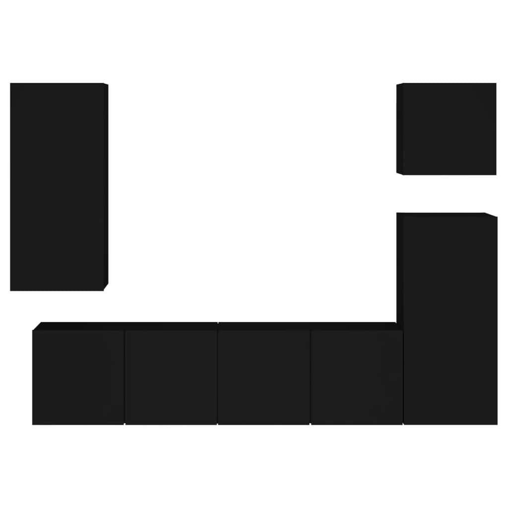 Mobili TV a Muro 5pz Neri in Legno Multistrato 3216447