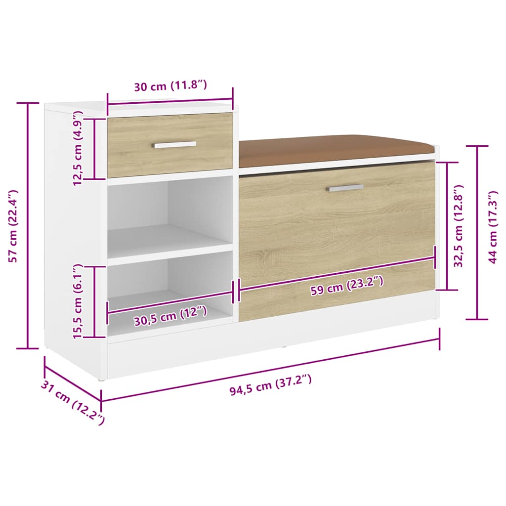 Panca Porta Scarpe Bianca Rovere Sonoma 94,5x31x57 Multistrato 326746