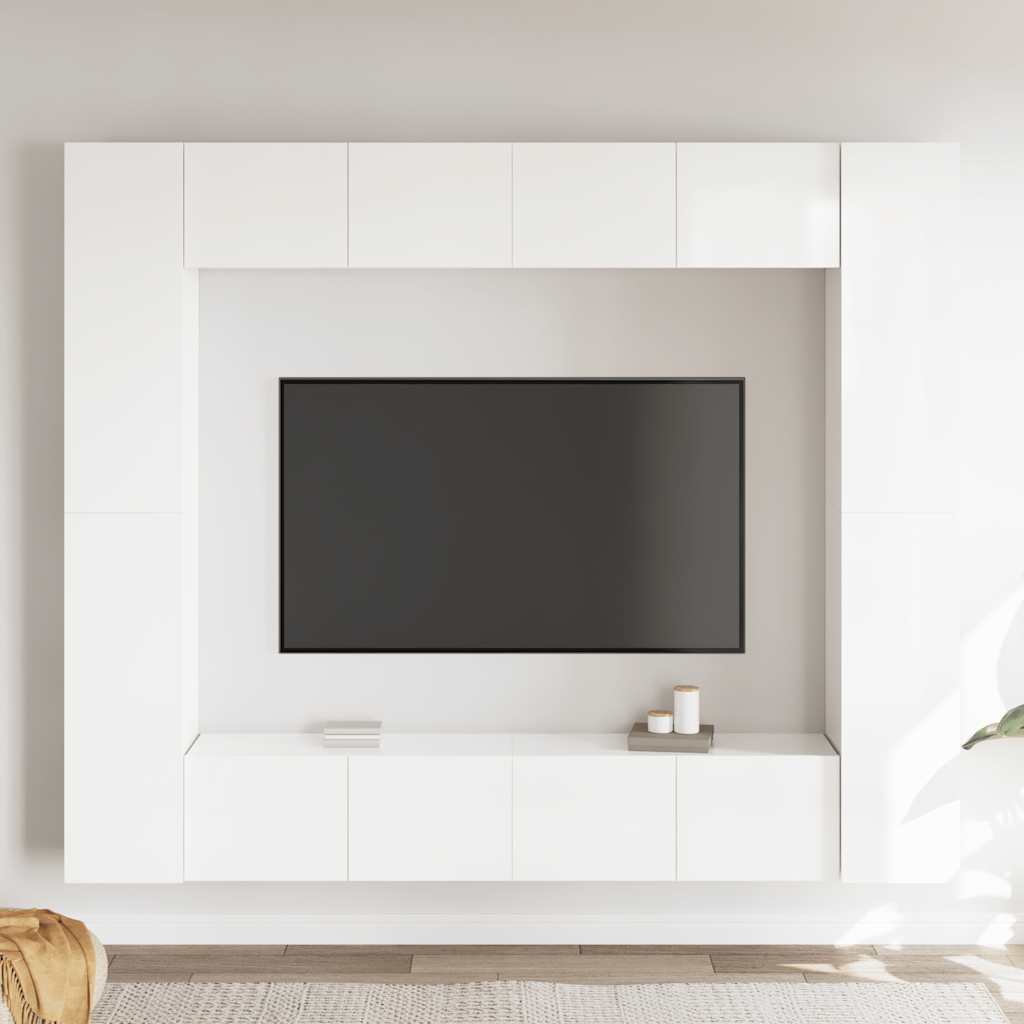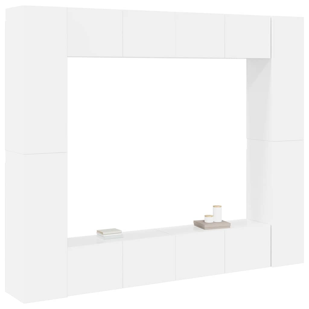 Set di Mobili Porta TV 8 pz Bianco Lucido in Legno Multistrato 3079280