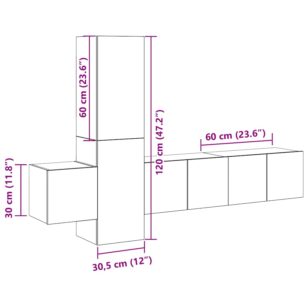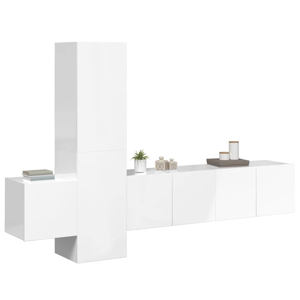 Set di Mobili Porta TV 5 pz Bianco Lucido in Legno Multistrato 3079283
