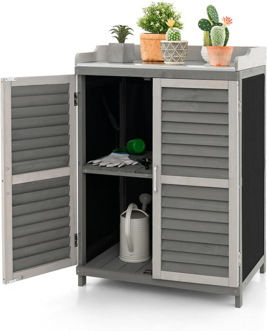 Add to wishlist0Easycomfort Casetta in Legno da Giardino con Tetto Impermeabile, Armadio da Esterno Porta Attrezzi da Giardino con 4 Scompartimenti, 87x46.5x160cm, Grigio