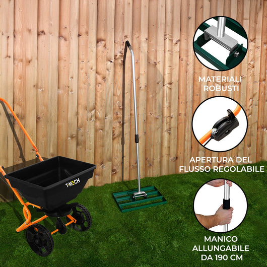 Add to wishlist0Spandiconcime con impugnatura pratica chiusure laterali e rullo a rete, Spanditerriccio in metallo larghezza 68 cm Verde-Attrezzi da giardino