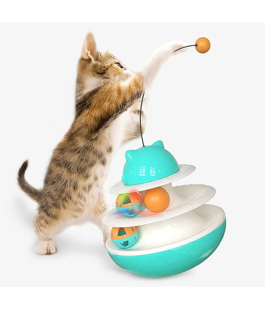 • Gioco Per Gatti Interattivo Torre Circolare Con Sfere Palline Rotanti Gatto
