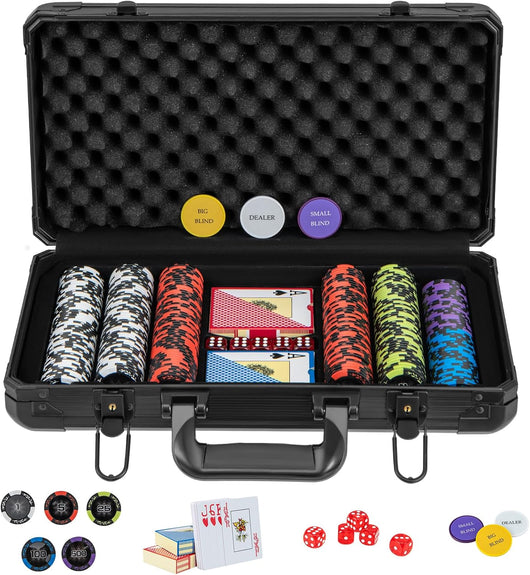 Add to wishlist0Set di chip da poker texas holdem con 300 pezzi e 2 mazzi di carte, Set poker 300 fich per serate in famiglia e raduni-Fiche e set da poker