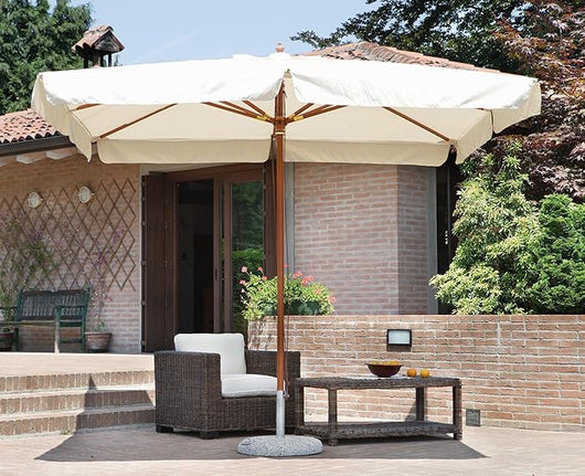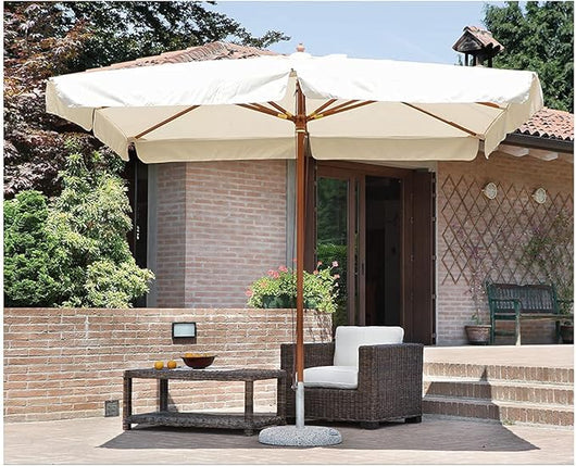 Add to wishlist0IRUY - Ombrellone da giardino 3x3 metri quadrato con palo da Ø 48mm in legno naturale e telo in poliestere ecrù con bordura da 50mm. 300x300x260H cm