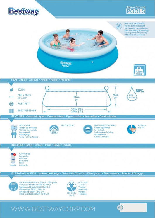 • Piscina fast set, cm. 305x76h, cap. 3,638 lt