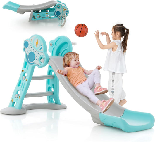Add to wishlist0Scivolo per Bambini 9 in 1, Set da Gioco con Canestro da Basket, Telescopio, Volante, Corridoio, Tunnel e Spazio di Archiviazione, Scivolo da Interno ed Esterno per 1+ Anni (Grigio+Bianco)