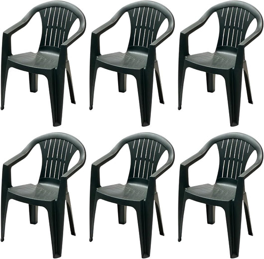 • Sedia Da Giardino In Plastica Con Braccioli Impilabile - Set di 6 Sedie Per Esterno - Ratak - Verde