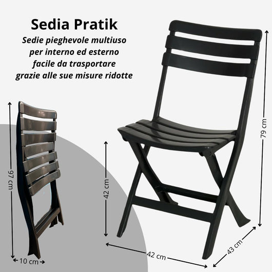 • Sedia da giardino in plastica pieghevole, Pratik, Set da 4 pz sedie per esterno Tomaino - Antracite