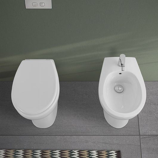 IDEAL STANDARD Coppia di sanitari filomuro: Bidet e Wc con sedile con cerniere in plastica | Eurovit