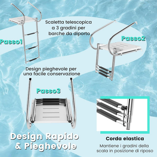 • Scaletta per piscina in acciaio inox e plastica a 4 gradini portata massima 180 kg 14_0001444