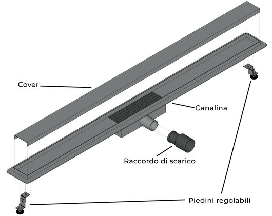 • Canalina di scarico doccia in acciaio inox 120 cm x 7 mod. Fill