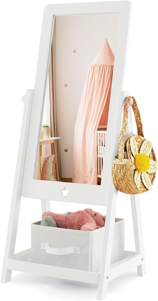 Add to wishlist0Specchio Portagioie da Terra, Armadietto Portagioielli e Girevole con Specchio a Figura Intera e 4 Ruote Universali Bloccabili, Specchiera da Camera da Letto per Bambini