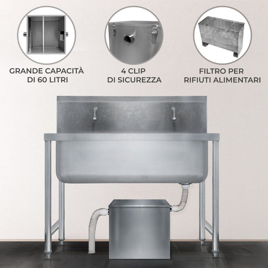 • Separatore di grasso commerciale 60L in acciaio inox con filtro intercettatore per rifiuti Ristorante