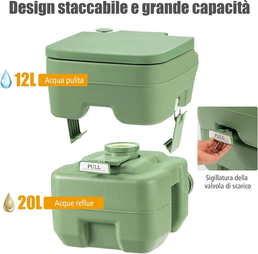 Add to wishlist0Toilette WC Portatile da Campeggio con 20 L di Serbatoio Acque Reflue e Pompa di Scarico, Indicatore del Livello dell’Acqua, Carico Massimo 200 kg, Ideale per Adulti e Bambini