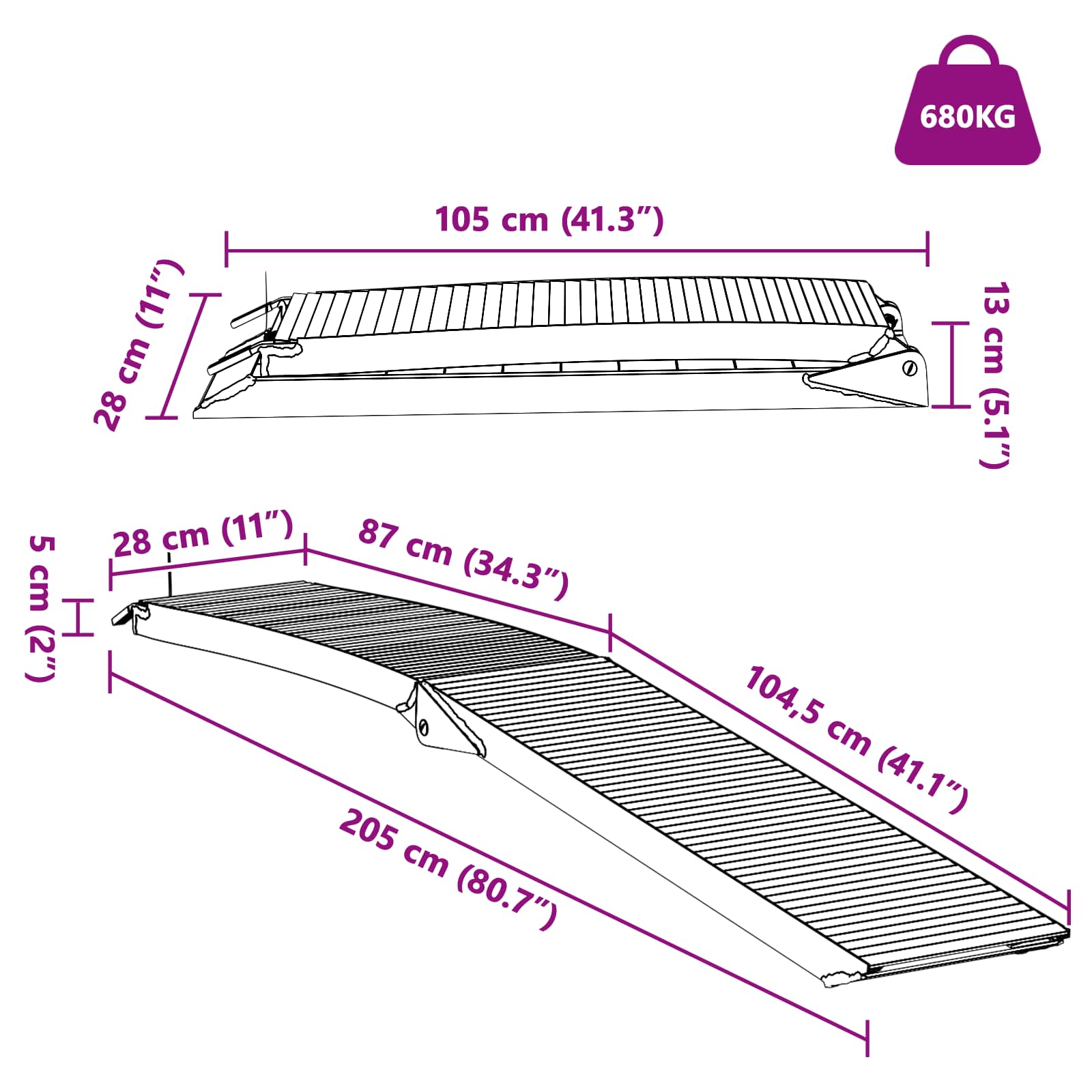 - Costruzione in alluminio robusto La rampa di carico è leggera e resistente, quindi ti garantisce un'alta capacità di carico e non si usura facilmente, il che la rende ideale per l'uso all'aperto.