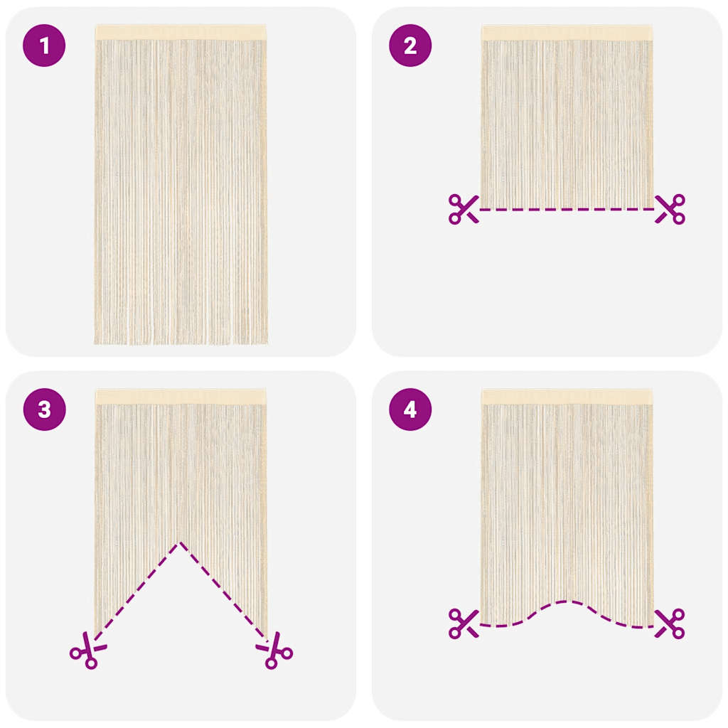 Le nostre pratiche tende a fili rappresentano un ottimo modo per decorare il vostro arredamento interno. Possono essere utilizzate come tende per porte, finestre, divisori o come sfondo per la vetrina di un negozio.