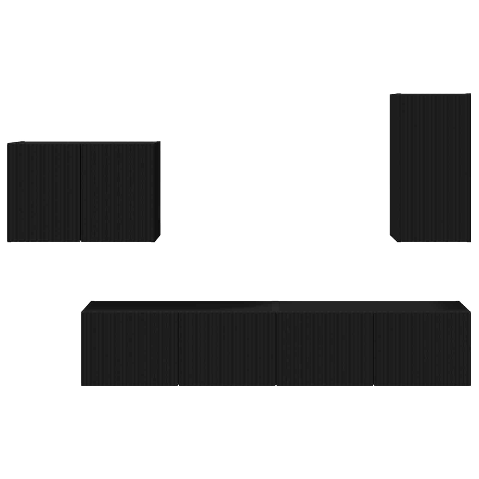 Set di Mobiletto da TV a Parete 4 pcs Nero Legno multistrato 3408935