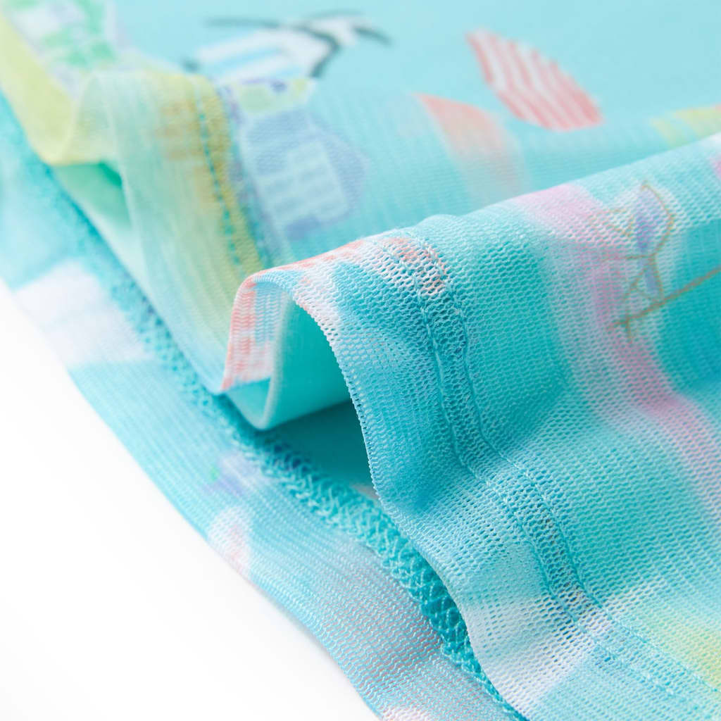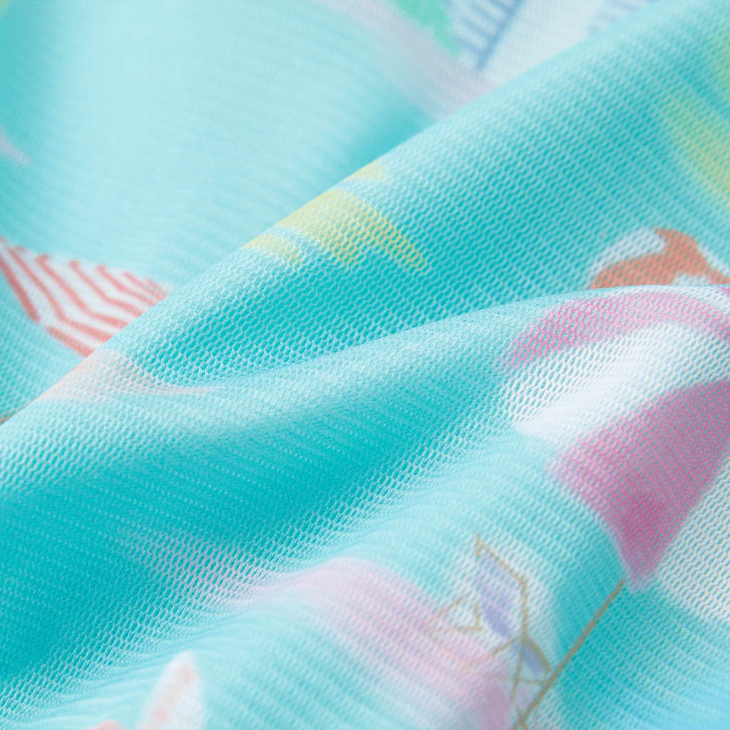Questo abito da bambina ha girocollo, maniche ad aletta, e vita elasticizzata. Questo abito per bambine presenta uno strato a rete con le stampe ripetute di paesaggi di mare. L'abito corto da bambina è realizzato in un materiale morbido composto da poliestere, cotone, ed elastan per offrire comfort e traspirabilità.