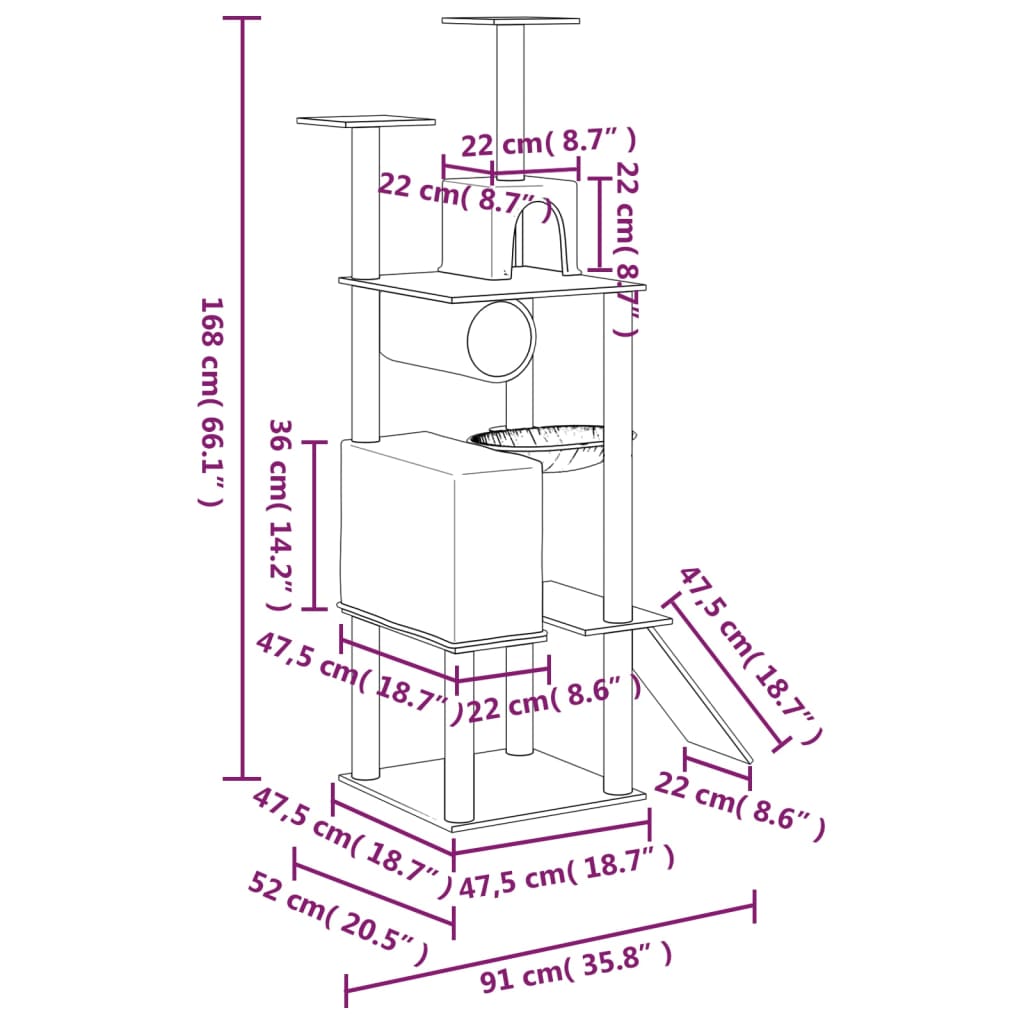 Albero per Gatti con Tiragraffi in Sisal Crema 168 cm 171699