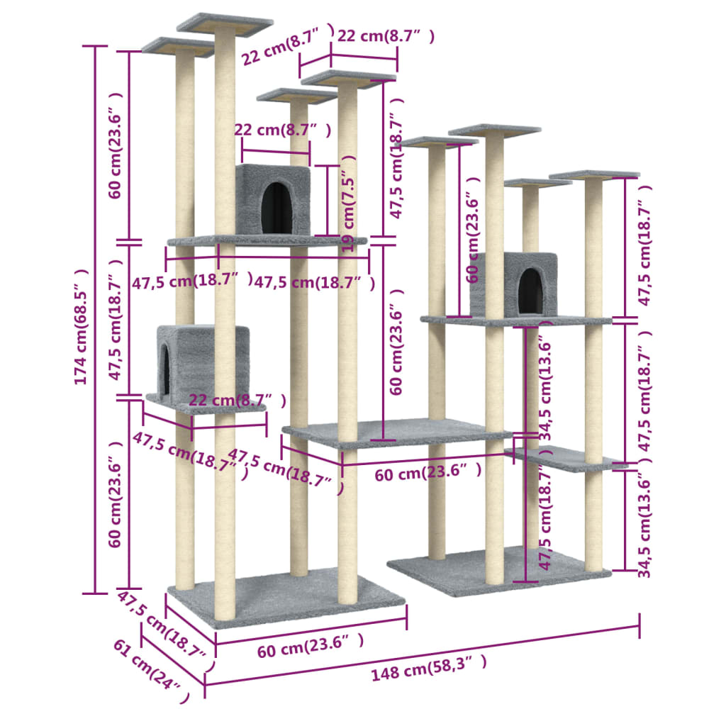 Albero per Gatti con Tiragraffi in Sisal Grigio Chiaro 174 cm 171534
