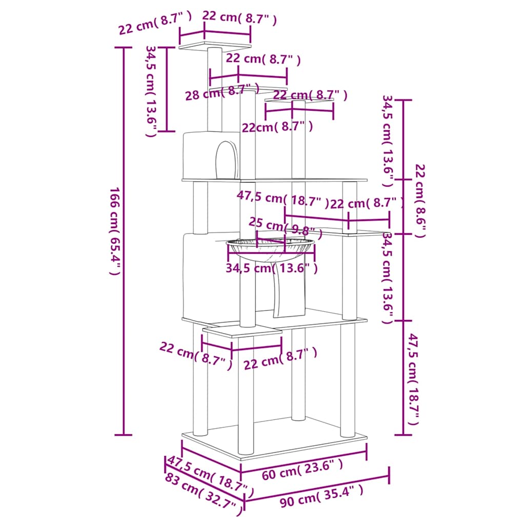 - Pali in sisal naturale: I robusti e durevoli pali in sisal naturale dell'albero tiragraffi per gatti sono perfetti per soddisfare l'istinto di graffiare dei vostri amati gatti e impedire loro di graffiare i vostri mobili.