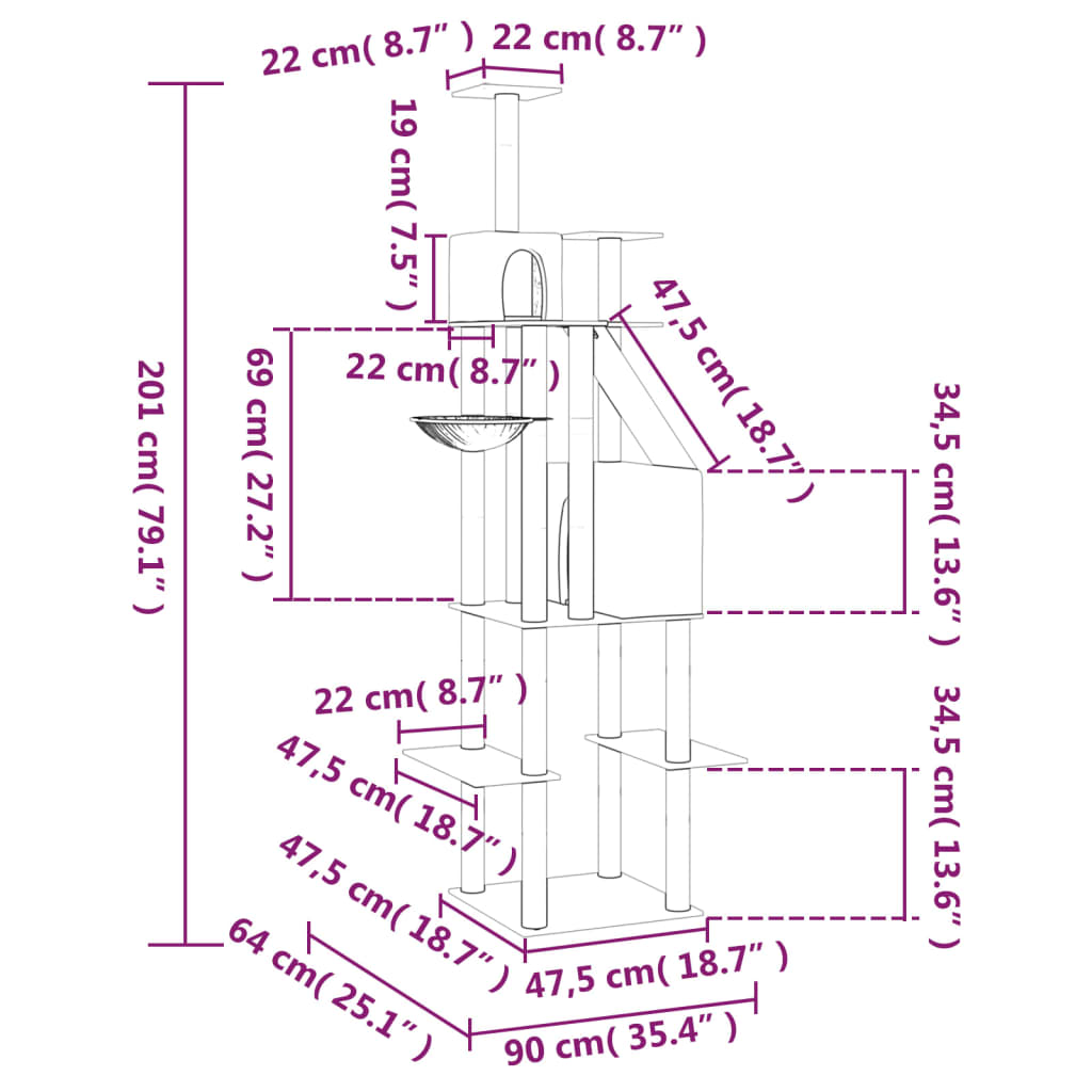 Albero per Gatti con Tiragraffi in Sisal Grigio Scuro 201 cm 171644