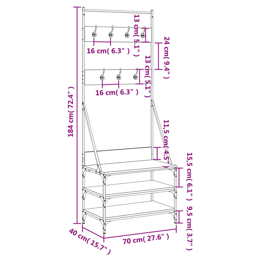 Appendiabiti con Porta Scarpe Rovere Sonoma 70x40x184 cm 837843