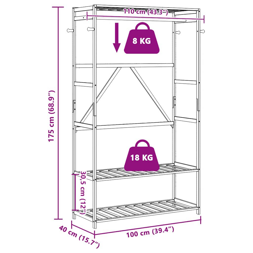 Appendiabiti con Ripiani 110x40x175 cm in Bambù 4008924