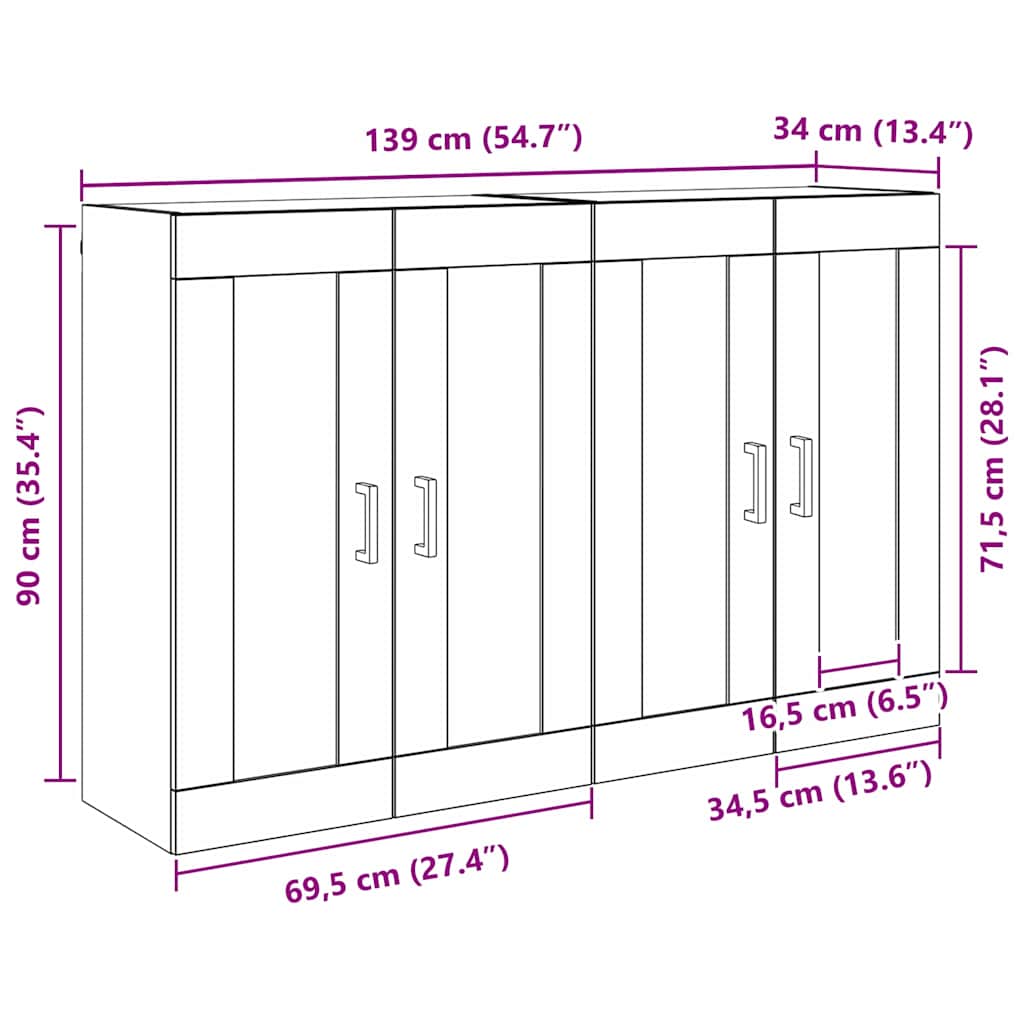 Mobile a muro 2 pcs Rovere Nero 69,5 x 34 x 90 cm 3415597