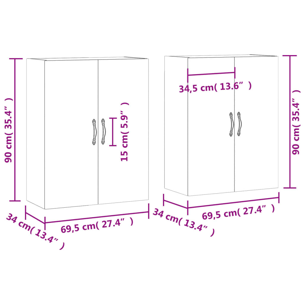 Armadietti a Parete 2 pz Grigio Cemento in Legno Multistrato 3197893