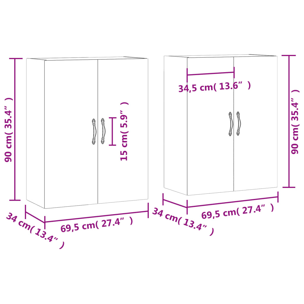 Armadietti a Parete 2 pz Rovere Marrone in Legno Multistrato 3197896