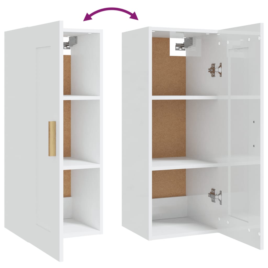 Armadietto a Muro Bianco Lucido 35x34x90 cm Legno Multistrato 812471