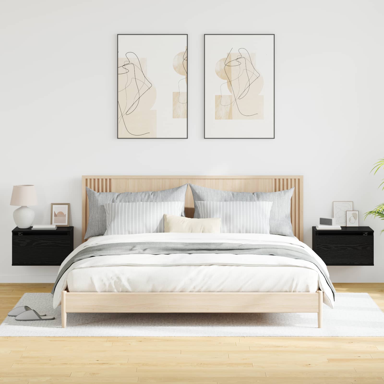 Mobiletto da comodino a parete con cassetto 2 pcs Rovere Nero 863083