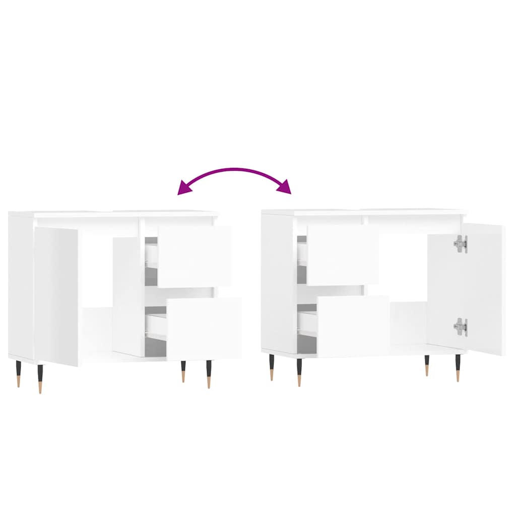 Armadietto Bagno Bianco Lucido 65x33x60cm in Legno Multistrato 831598