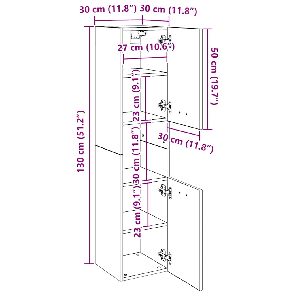 Armadietto Bagno Rovere Fumo 30x30x130 cm in Legno Multistrato 815639