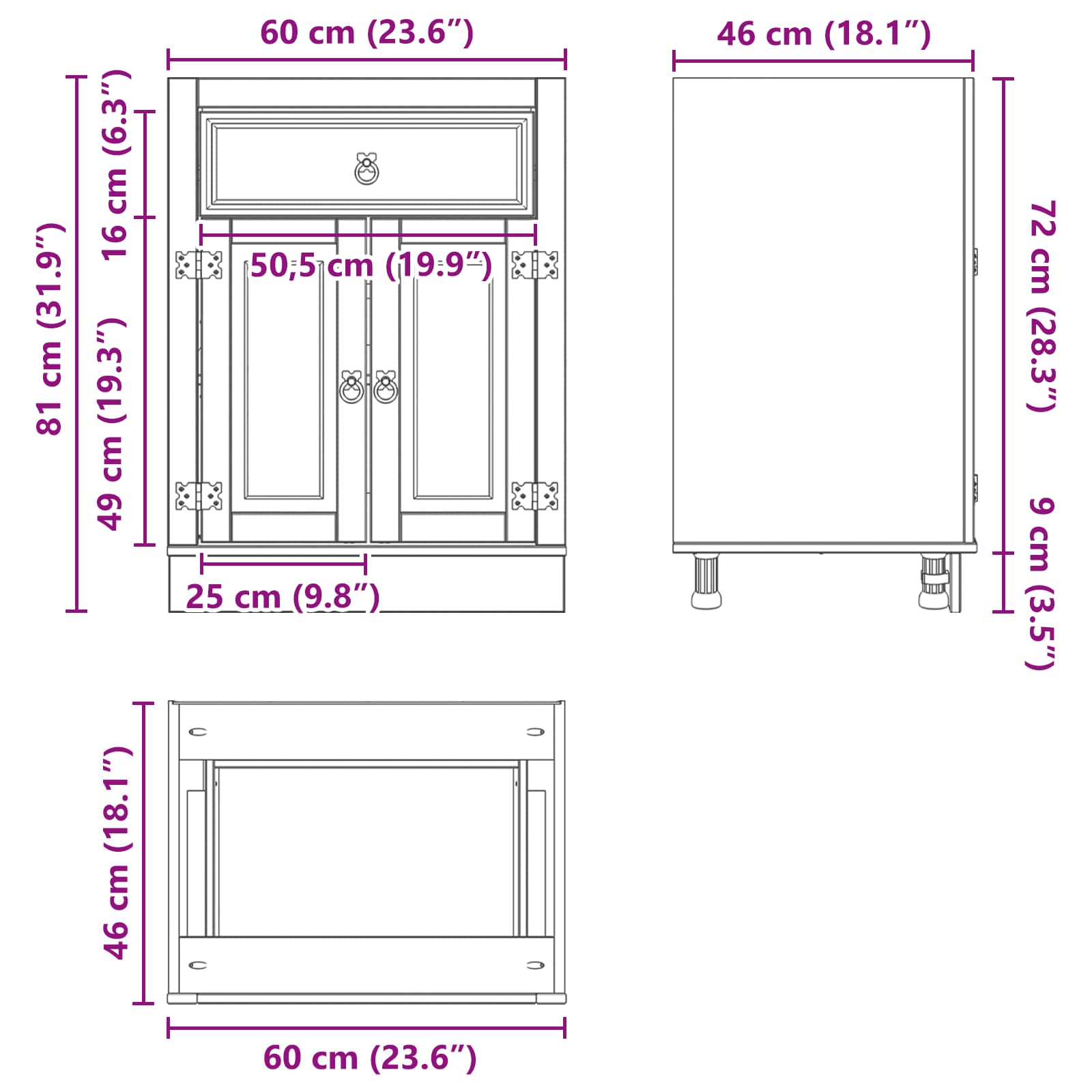 - Dimensioni complessive: 60 x 46 x 81,5 cm (L x P x A)