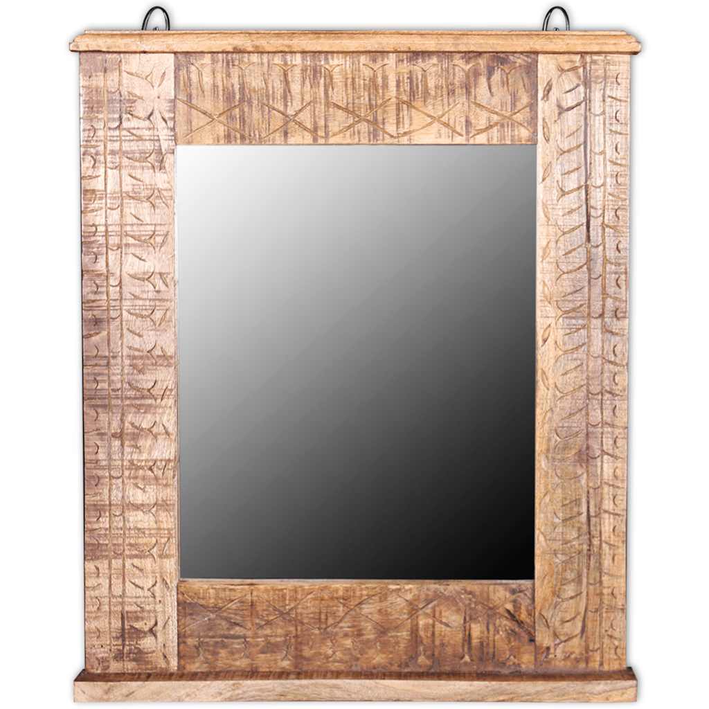 Il mobiletto da bagno e la cornice di questo specchio sono entrambi realizzati in legno massello di mango, il che rende questo set di mobili da bagno robusto, stabile e durevole. La lavorazione artigianale e le bellissime venature del legno rendono ogni pezzo unico e leggermente diverso dagli altri.