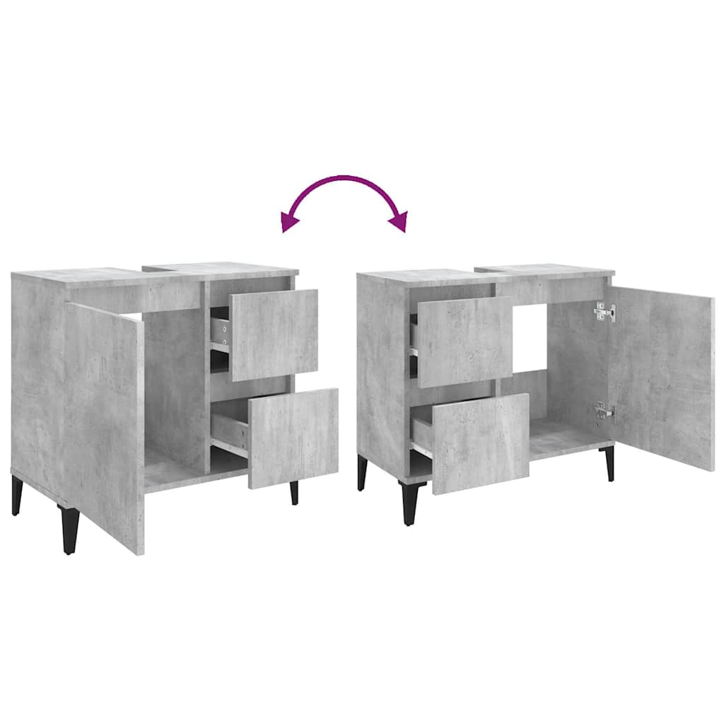 Armadietto da Bagno Grigio Cemento 65x33x60cm Legno Multistrato 819832