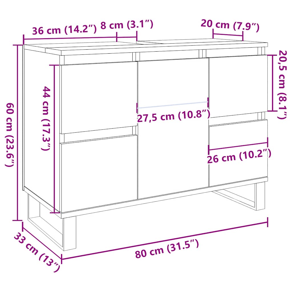 Armadietto da Bagno Grigio Cemento 80x33x60cm Legno Multistrato 857237