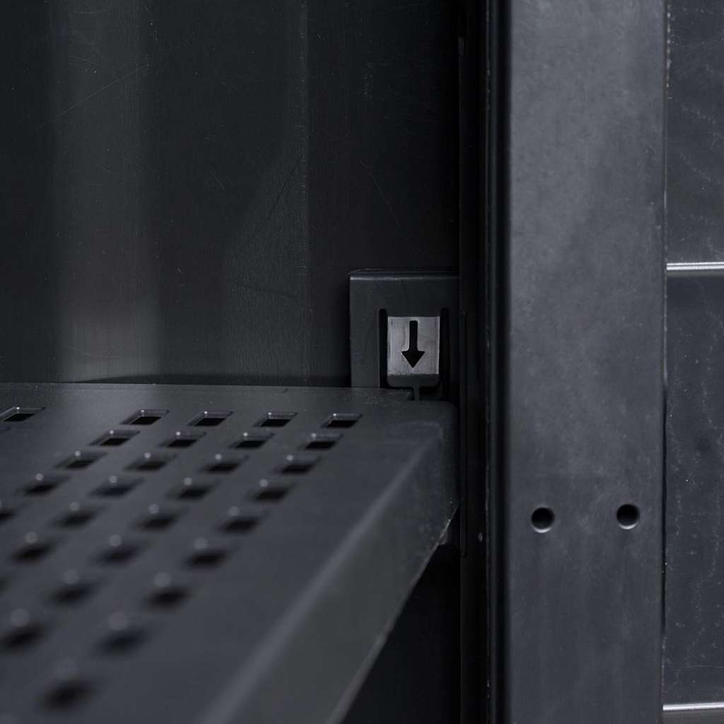 Questo armadietto certificato TÜV-GS è realizzato in robusto e resistente polipropilene (PP). Questo prodotto, molto spazioso, è dotato di ripiani ventilati la cui altezza può essere variata per accogliere oggetti di dimensioni diverse. L'armadietto da giardino può essere chiuso con un lucchetto per una maggiore sicurezza (il lucchetto non è incluso).