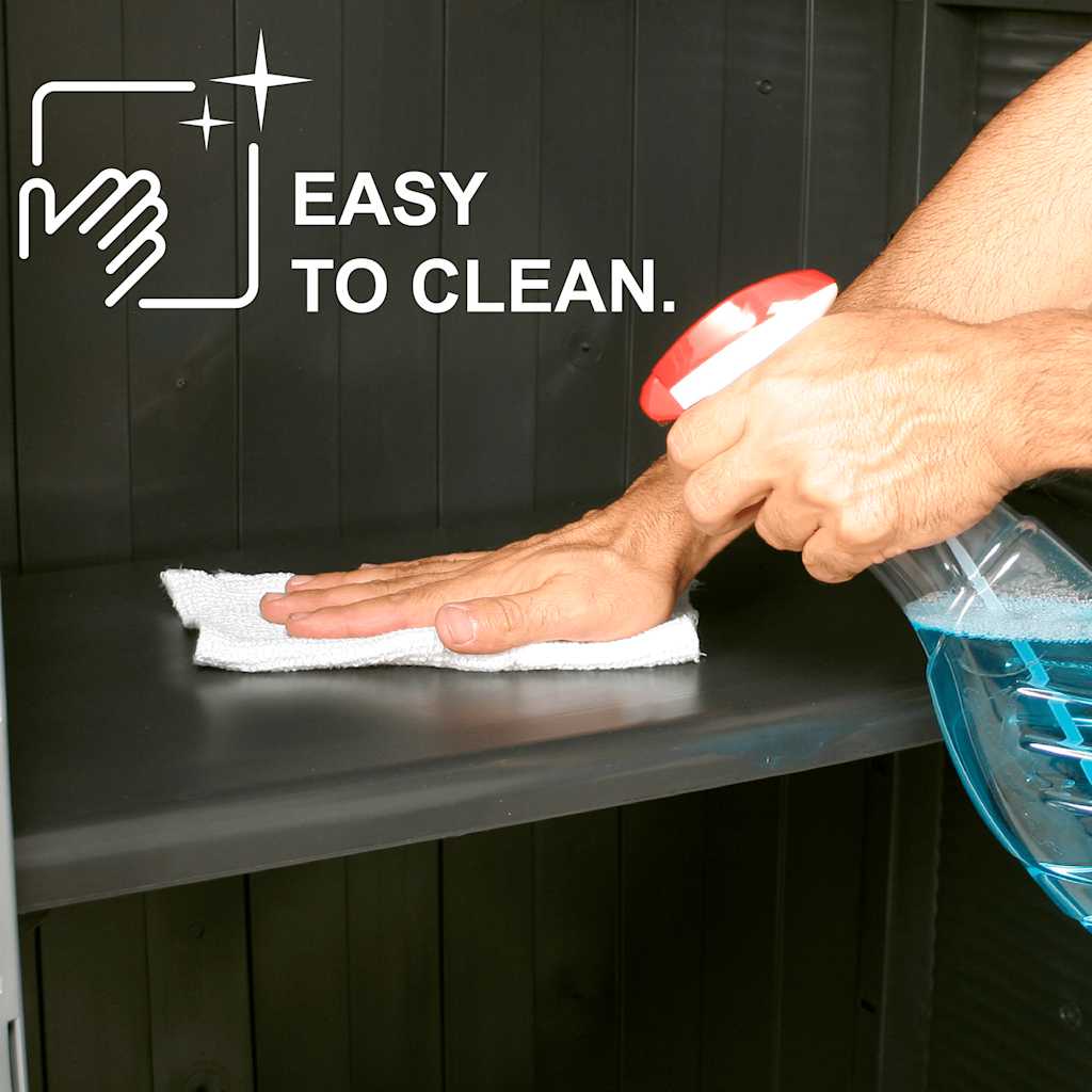 Questo armadietto è realizzato in plastica, il che lo rende facile da pulire. L'armadietto offre ampio spazio di stoccaggio per avere tutto l'essenziale in ordine e a portata di mano. L'organizer per la casa ha un design compatto e consente di sfruttare al massimo lo spazio limitato a disposizione.