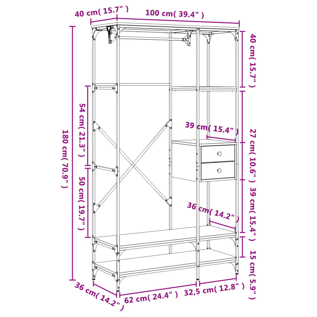 - Ampio spazio portaoggetti: Il guardaroba dispone di molto spazio per organizzare i vostri indumenti e le vostre borse. Il ripiano superiore è ideale per contenitori e vestiti piegati, mentre quello inferiore è perfetto per le scarpe. Potete appendere i vostri abiti più lunghi sull'asta e riporre la biancheria intima nei cassetti.