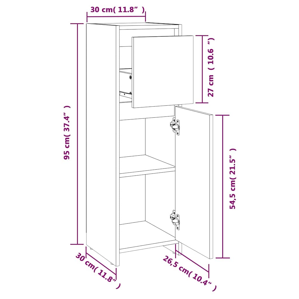 Mobile da Bagno Nero 30x30x95 cm in Legno Multistrato 802661