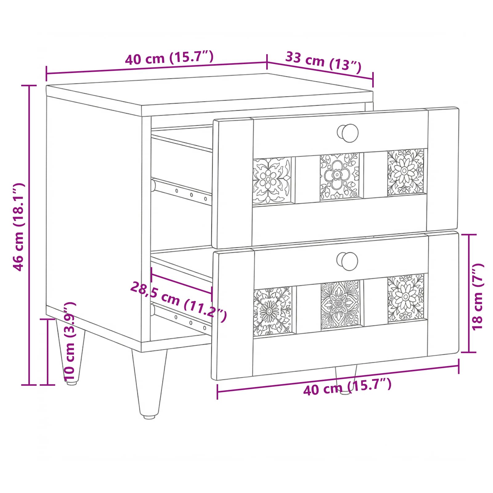 - Spazio di archiviazione ampio: Con i suoi cassetti spaziosi, questo mobile offre tanto spazio per i tuoi oggetti personali. Il design estraibile facilita l'accesso, mantenendo l'ambiente ordinato e i tuoi essenziali sempre a portata di mano.