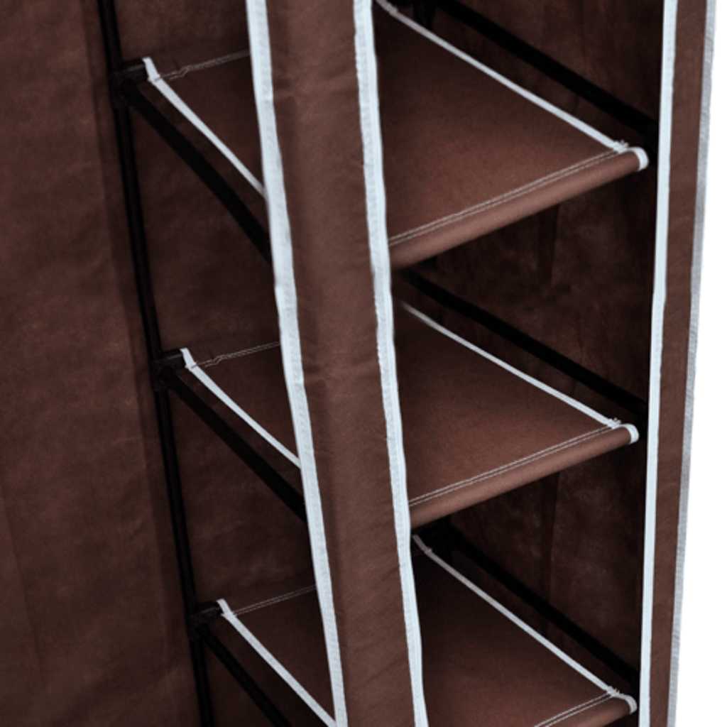 È pieghevole, quindi risparmia spazio. La porta arrotolata è fissata con dispositivi di fissaggio a gancio. La porta protegge i tuoi vestiti da polvere e sporco. Grazie alle cerniere, è facile da aprire e chiudere. Realizzato in tessuto pile e tubi di acciaio, il nostro armadio in tessuto è molto resistente.